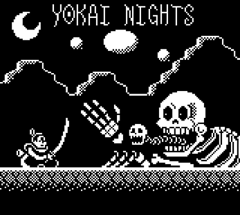The limitation of having a one bit color made me keep imagining a skeleton as the player character. I mean, skeletons look so good against a black background. I played around with this idea, but wanted to put more details in the skeleton, so I created the large skeleton Yokai as an enemy type. The rest of the pieces seemed to fall into place once I created this character, it reminded me of the ukiyo-e print Takiyaha the Witch and the Skeleton Spectre by Utagawa Kuniyoshi. This got me thinking that a samurai for the player character would be a really fun game to play. So I worked out the samurai's look for the piece.
